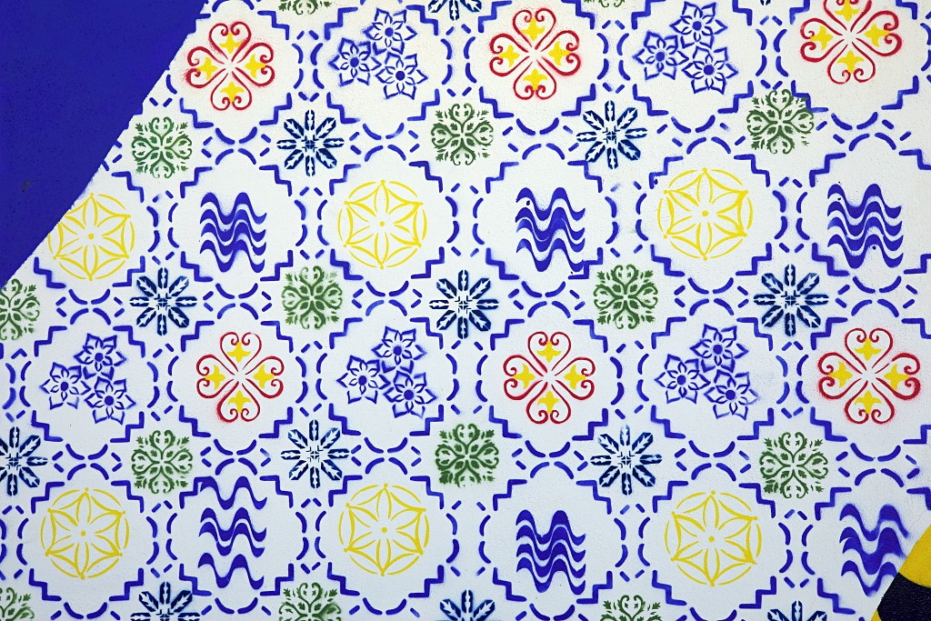 En el mural se representan aquellas formas arquitectónicas y ornamentales comunes a ambos lados de la raya. La artista, para tomar inspiración, se desplazó en repetidas ocasiones al Barrio Gótico de Valencia de Alcántara y al Barrio Judío de Marvao, plasmando más tarde en el mural, aquellas que se repetían en ambos.